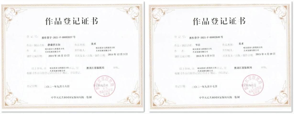 目前,哈尔滨市七彩莲花文化艺术发展有限公司已经拥有“麻花布北蓝印染技艺”省级非物质文化遗产,成为省级文化产业实验基地、省级非物质文化遗产保护单位、哈尔滨市创意产业实验基地等。企业在产品开发的同时注重高度重视版权保护工作,企业拥有12项发明和实用新型专利、48项版权著作权、2项软著、6个注册商标。以汉麻文化为基因,以版权为动能,引领龙江消费新风尚。
