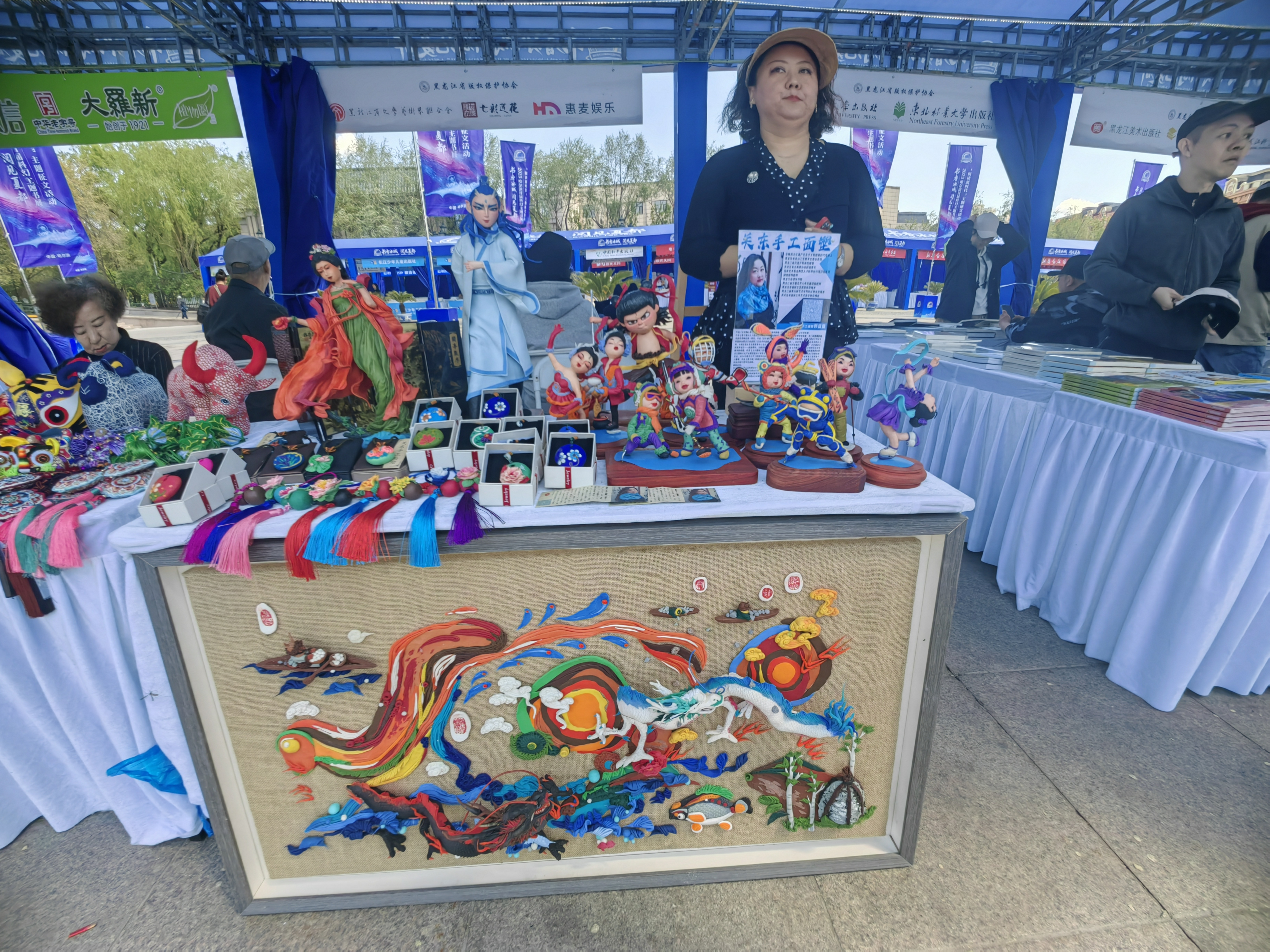 现场设置的非遗体验区吸引了众多市民积极参与。小小面团在非遗传承人的指尖化作“腾云蛟龙”,栩栩如生。非遗关东手工面塑第四代传承人郭蓝蓝现场展示面塑技艺手工玫瑰,不仅吸引了众多市民争相体验,更赢得参观书展嘉宾的高度赞扬。特色版权产品展销交流活动以沉浸式体验,让市民近距离感受龙江非遗技艺的独特魅力,见证以版权赋能激发非遗创新活力。